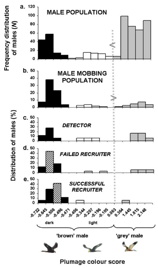 Another piece of evidence that this is another male gender is that we’re not talking about a few outliers. These so-called female mimics compose 40 percent of marsh harrier males. It is common sense that, in general, camouflage can work for an individual here and there but not for large droves of them. Oh, and one more thing: if the territorial males are really fooled by the mobbing males, why don’t they try to mate with them?
